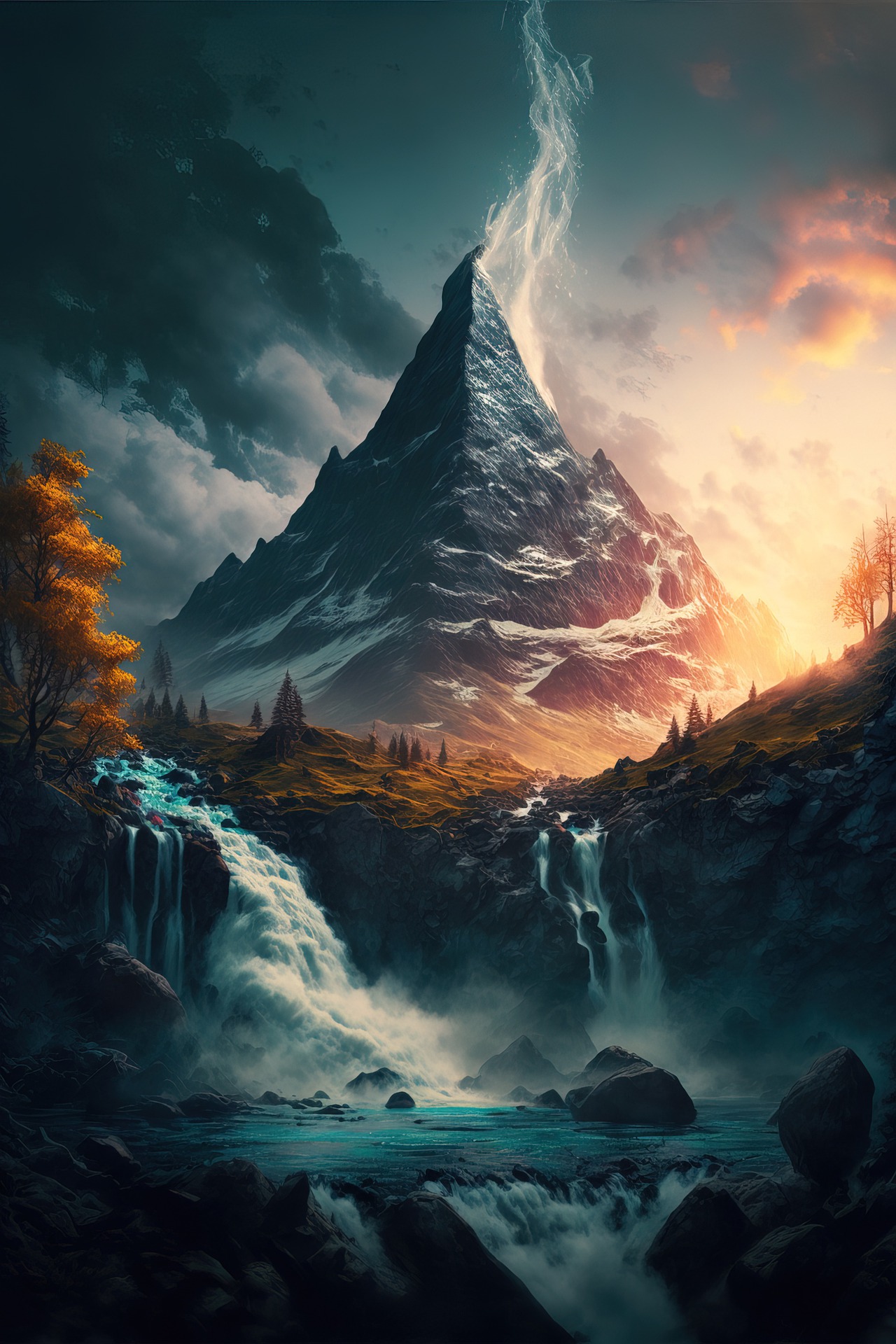 山 湖 树木